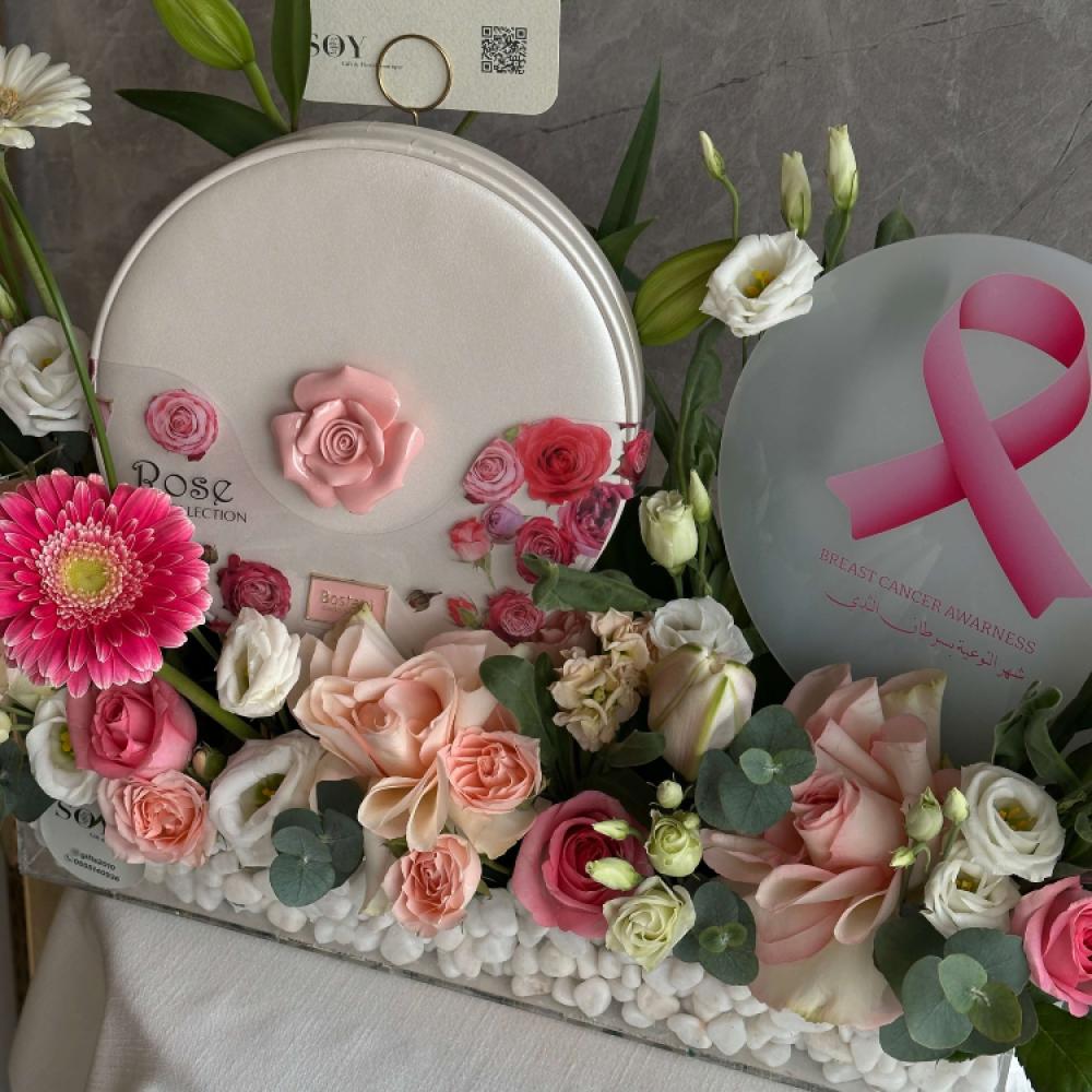 تنسيق ورد وهدايا “أمل وردي” مع شوكولاتة بستاني للتوعية بسرطان الثدي من SOY Gifts